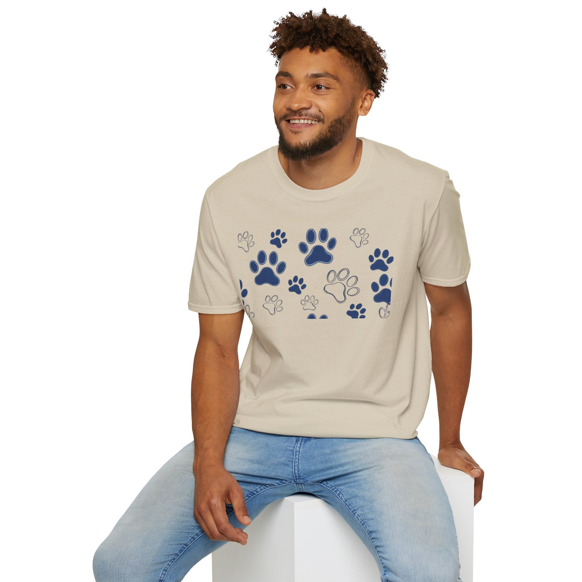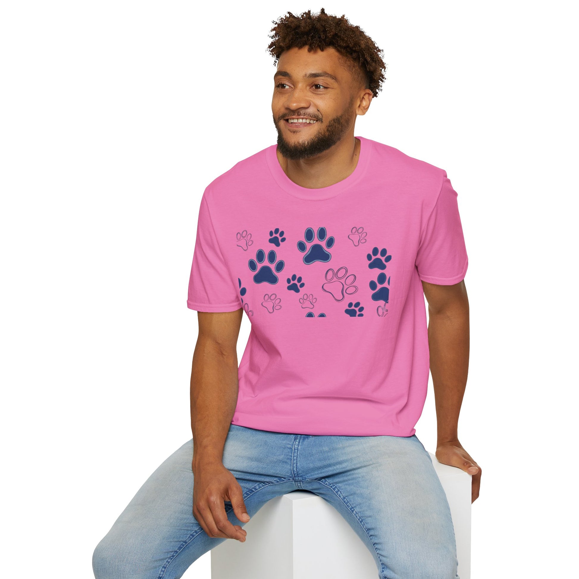 Introducing a comfortable and stylish Unisex Softstyle T-Shirt that brings a touch of charm to everyday wear. This t-shirt features a delightful paw print design, perfect for animal lovers and pet owners. Crafted from lightweight, 100% ring-spun cotton, it feels soft against the skin and maintains its shape wash after wash. The versatile crew neckline and classic fit make it an ideal choice for casual outings, cozy nights in, or even as a fun gift for holidays like National Dog Day or birthdays of your furry friends. Celebrate your love for pets while staying comfortable, whether you're lounging at home or out on a walk. This t-shirt is suitable for adults who appreciate quality and style in their wardrobe.