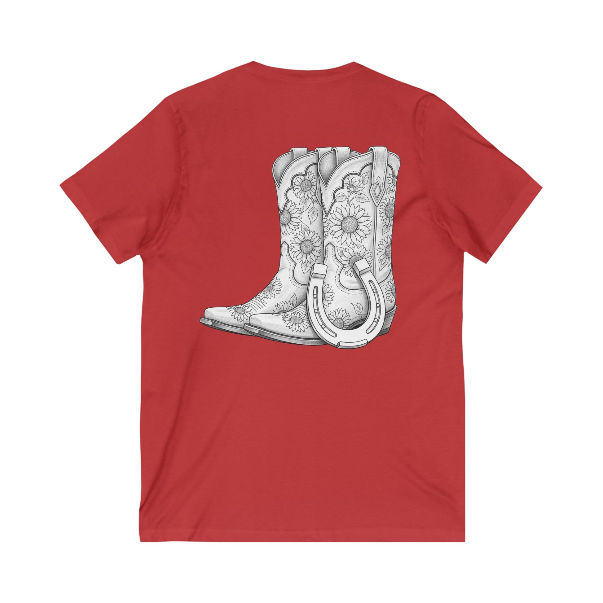 Embrace the country vibe with this stylish Jersey Short Sleeve V-Neck Tee. Crafted from lightweight 100% cotton, this tee offers a perfect blend of comfort and breathability—ideal for any season. The trendy V-neck design and retail fit create a chic silhouette, making it a versatile choice for casual outings or relaxed gatherings. Perfect for country music lovers, outdoor enthusiasts, or anyone who appreciates a laid-back lifestyle, this tee is a great addition to your wardrobe. Celebrate occasions such as concerts, barbecues, or family gatherings in this unique tee, making it a thoughtful gift for birthdays, holidays, or just because. Wear your love for country living boldly!