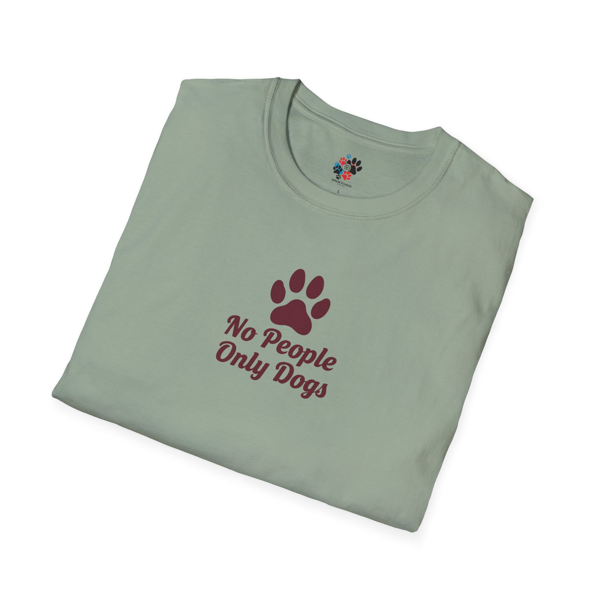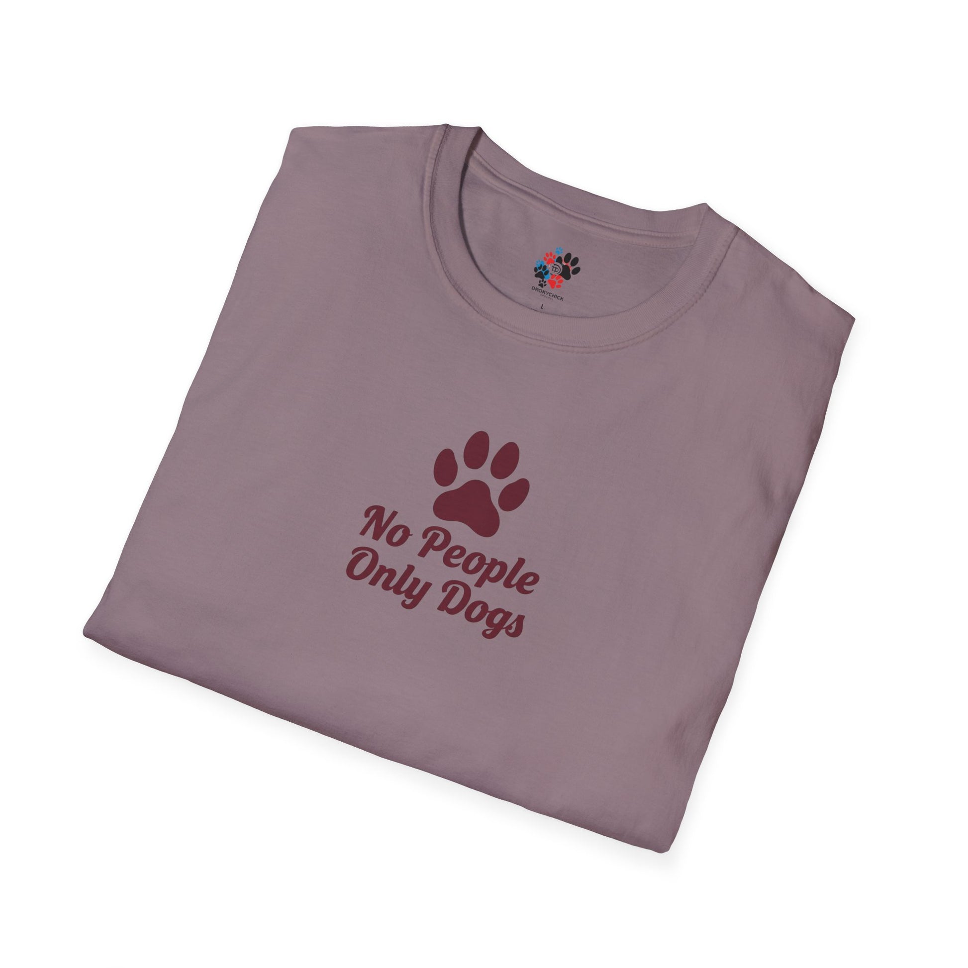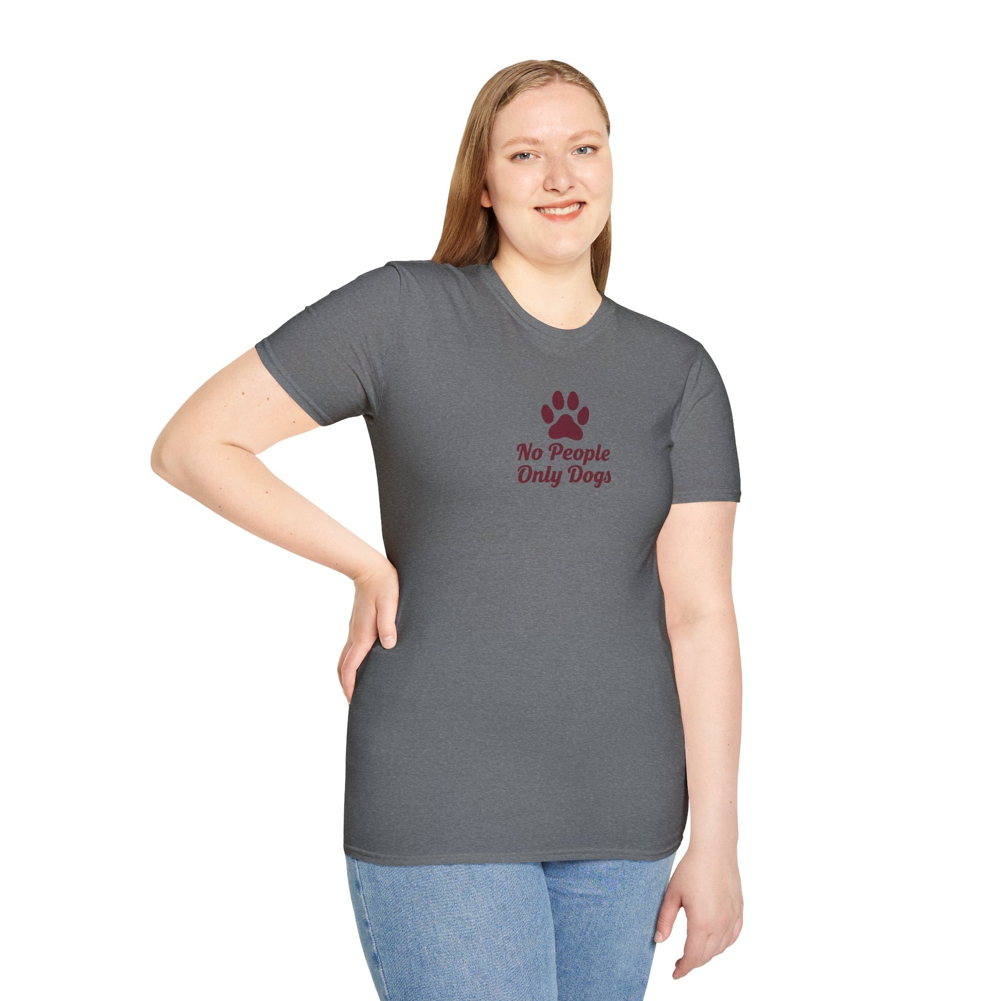 Introducing the perfect Unisex Softstyle T-Shirt for dog lovers! This comfortable tee exudes a fun and laid-back vibe, making it a staple in any casual wardrobe. Its playful design statement, 'No People Only Dogs,' resonates with those who cherish their canine companions. Whether you're lounging at home, taking a stroll in the park, or meeting friends for a casual outing, this t-shirt fits effortlessly into your lifestyle. Ideal for dog owners and animal enthusiasts, it's especially relevant for pet-related events, holidays like National Dog Day, or just as a delightful gift for dog dads and moms. Celebrate your love for dogs every day!