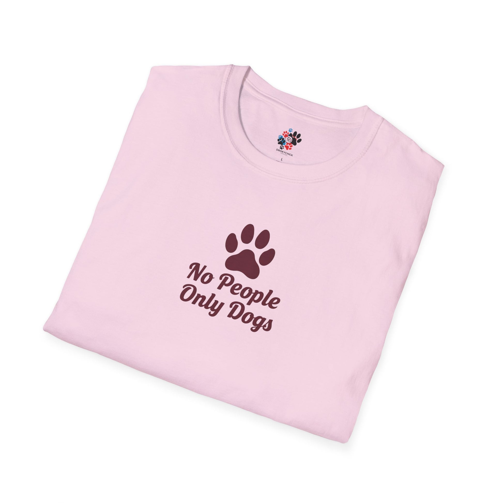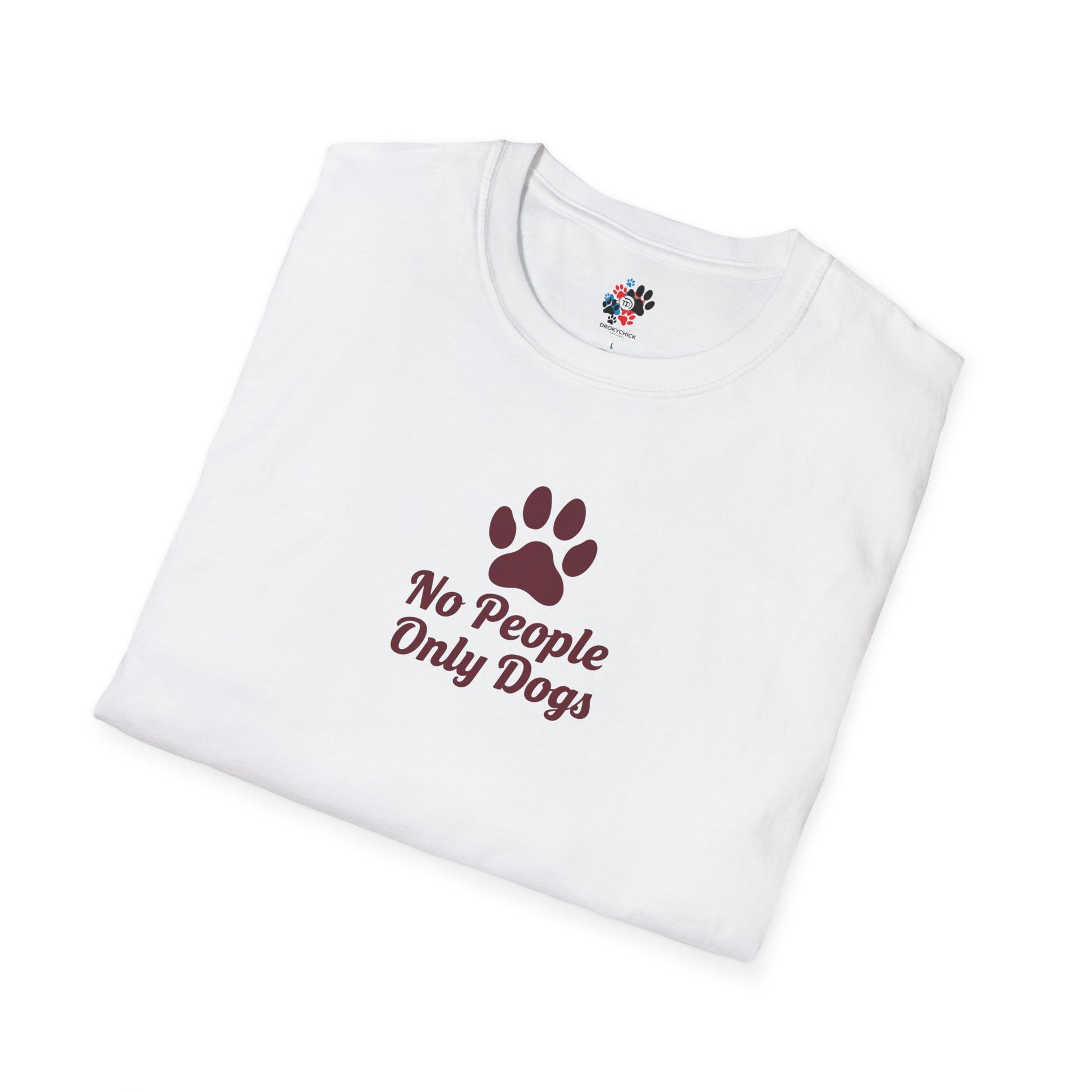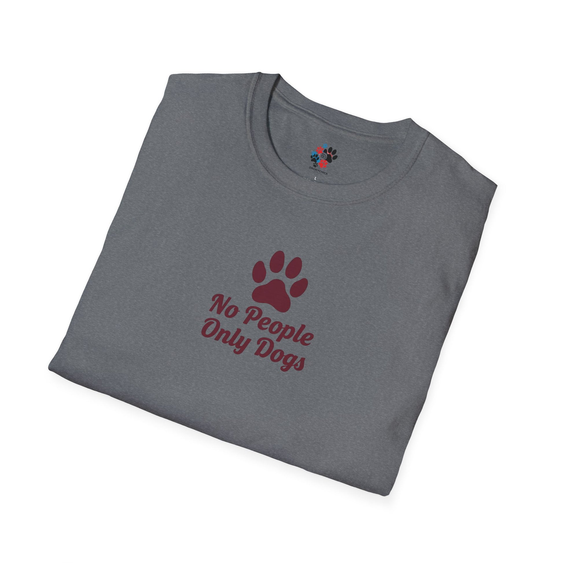 Introducing the perfect Unisex Softstyle T-Shirt for dog lovers! This comfortable tee exudes a fun and laid-back vibe, making it a staple in any casual wardrobe. Its playful design statement, 'No People Only Dogs,' resonates with those who cherish their canine companions. Whether you're lounging at home, taking a stroll in the park, or meeting friends for a casual outing, this t-shirt fits effortlessly into your lifestyle. Ideal for dog owners and animal enthusiasts, it's especially relevant for pet-related events, holidays like National Dog Day, or just as a delightful gift for dog dads and moms. Celebrate your love for dogs every day!