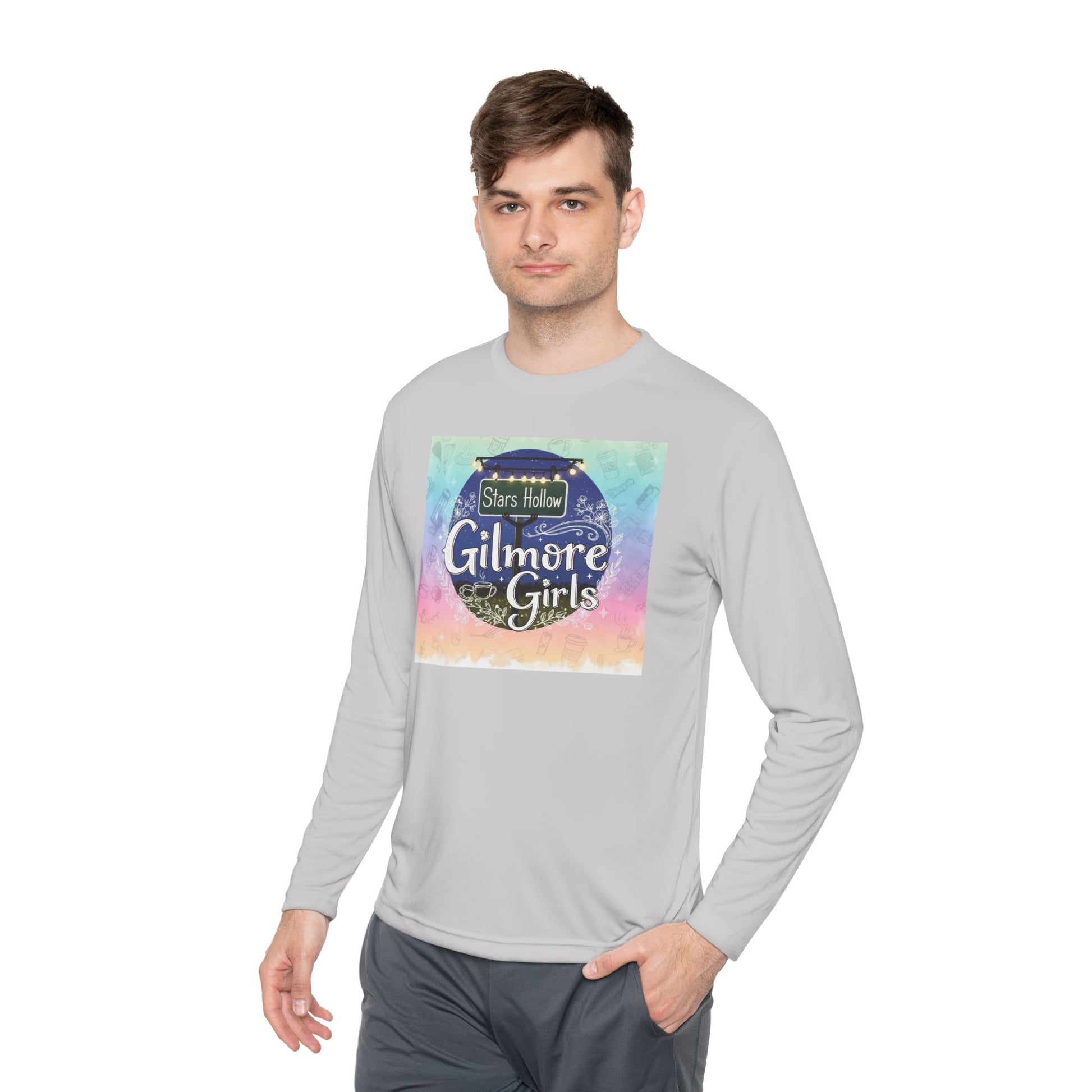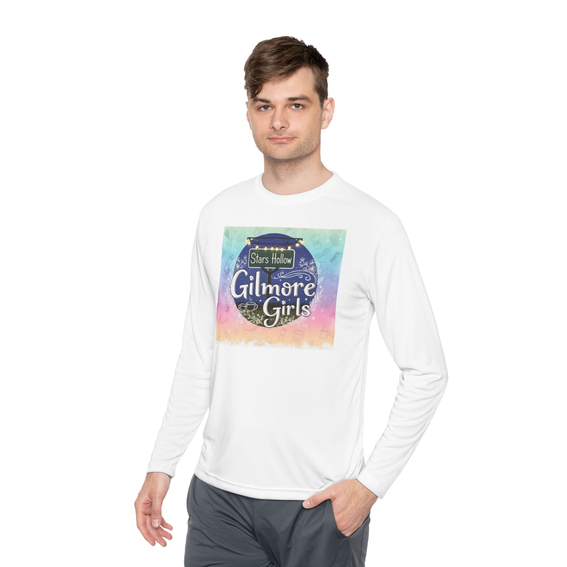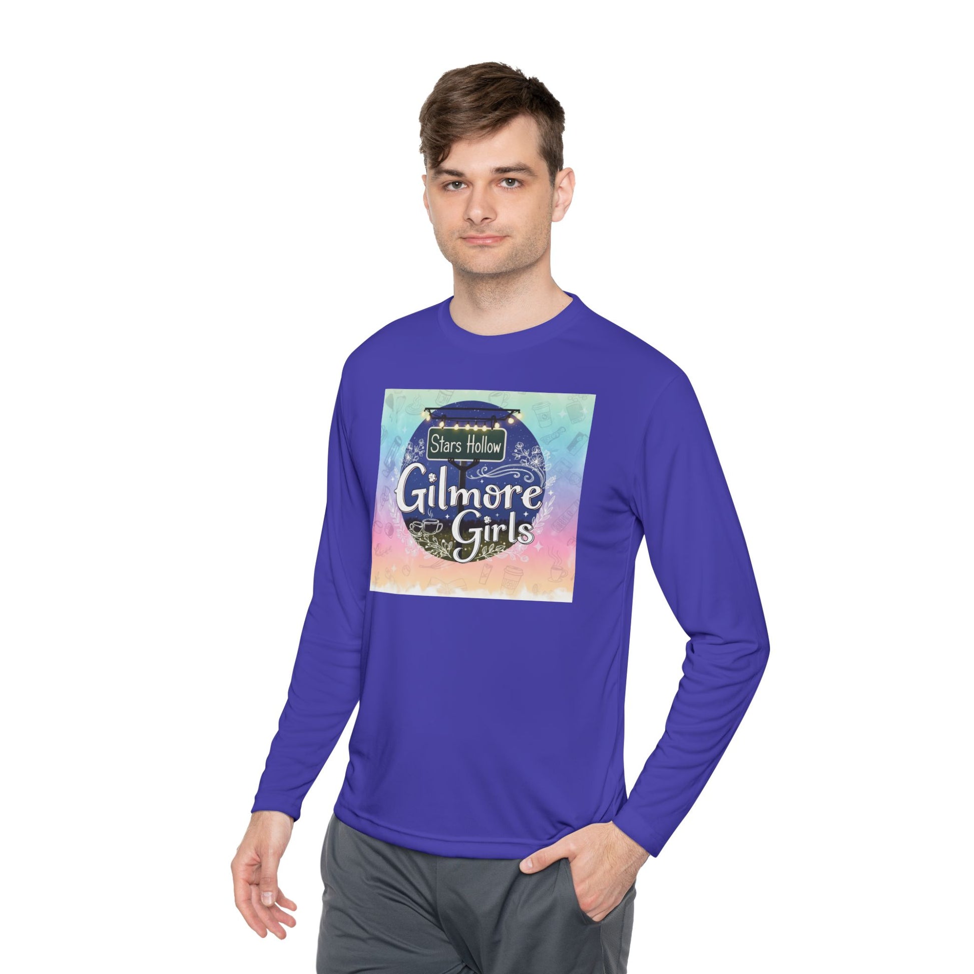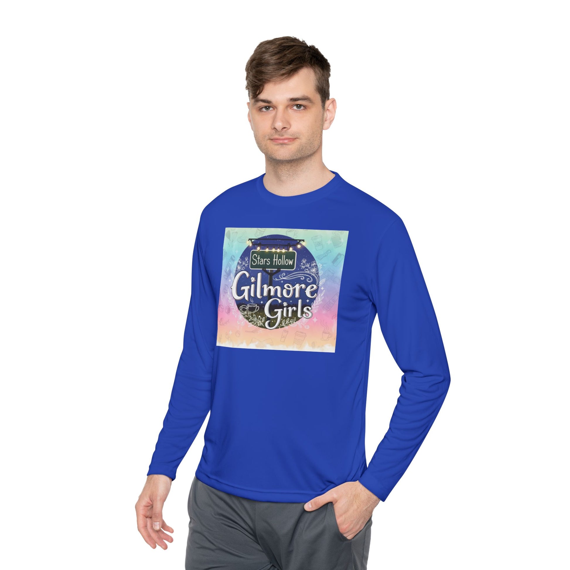 Stay stylish and comfortable in this Unisex Lightweight Long Sleeve Tee, perfect for those who love to express their fandom. With a fun, nostalgic design inspired by the beloved 'Gilmore Girls' series, this tee brings a sense of warmth and familiarity, making it a fantastic addition to any casual wardrobe. Its moisture-wicking material makes it ideal for everyday wear or for a cozy binge-watching session with friends. Designed for fans and lovers of comfort, it’s great for casual outings or laid-back home days. This tee is perfect as a thoughtful gift for birthdays, holidays, or just to brighten up a fellow fan's day.