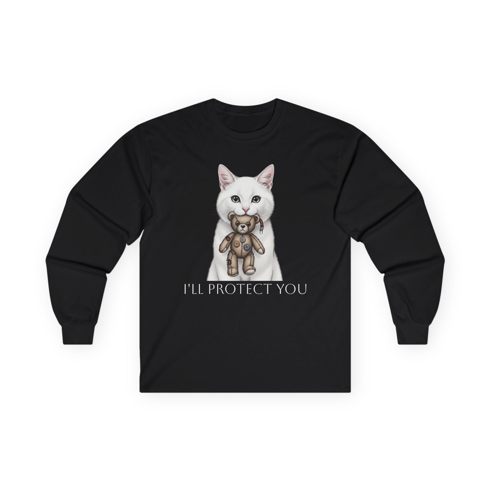 This unisex ultra cotton long sleeve tee combines comfort and style for a relaxed yet fashionable vibe. Made from environmentally-friendly cotton, it features a thicker vintage feel that’s perfect for cooler days. With its classic fit and ribbed knit collar, this tee looks great whether you're out with friends, lounging at home, or running errands. Ideal for cat lovers or anyone who enjoys unique, playful designs, this shirt makes a fantastic gift. It's perfect for holidays, birthdays, or just to brighten someone's day! Embrace your love for cats while looking effortlessly chic!