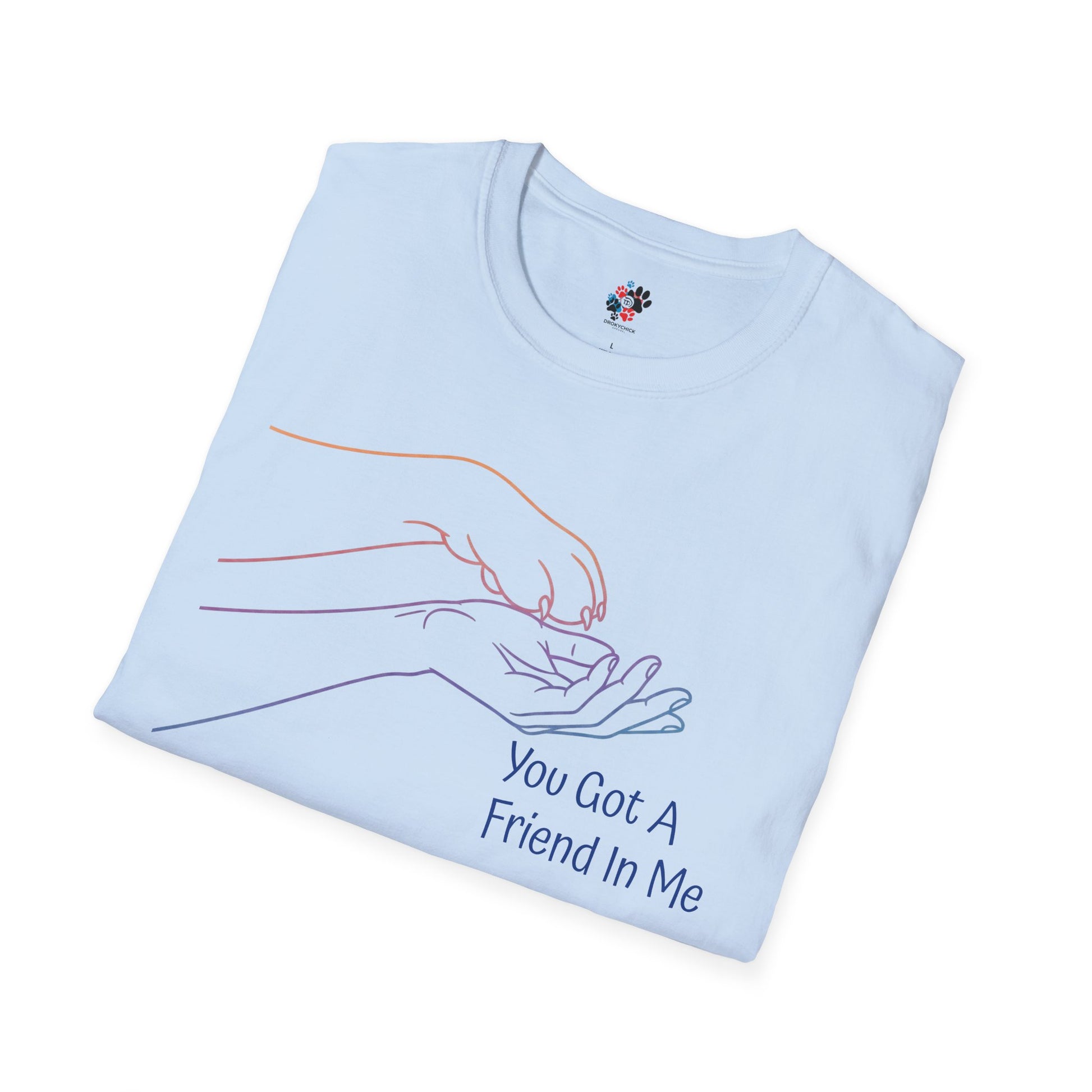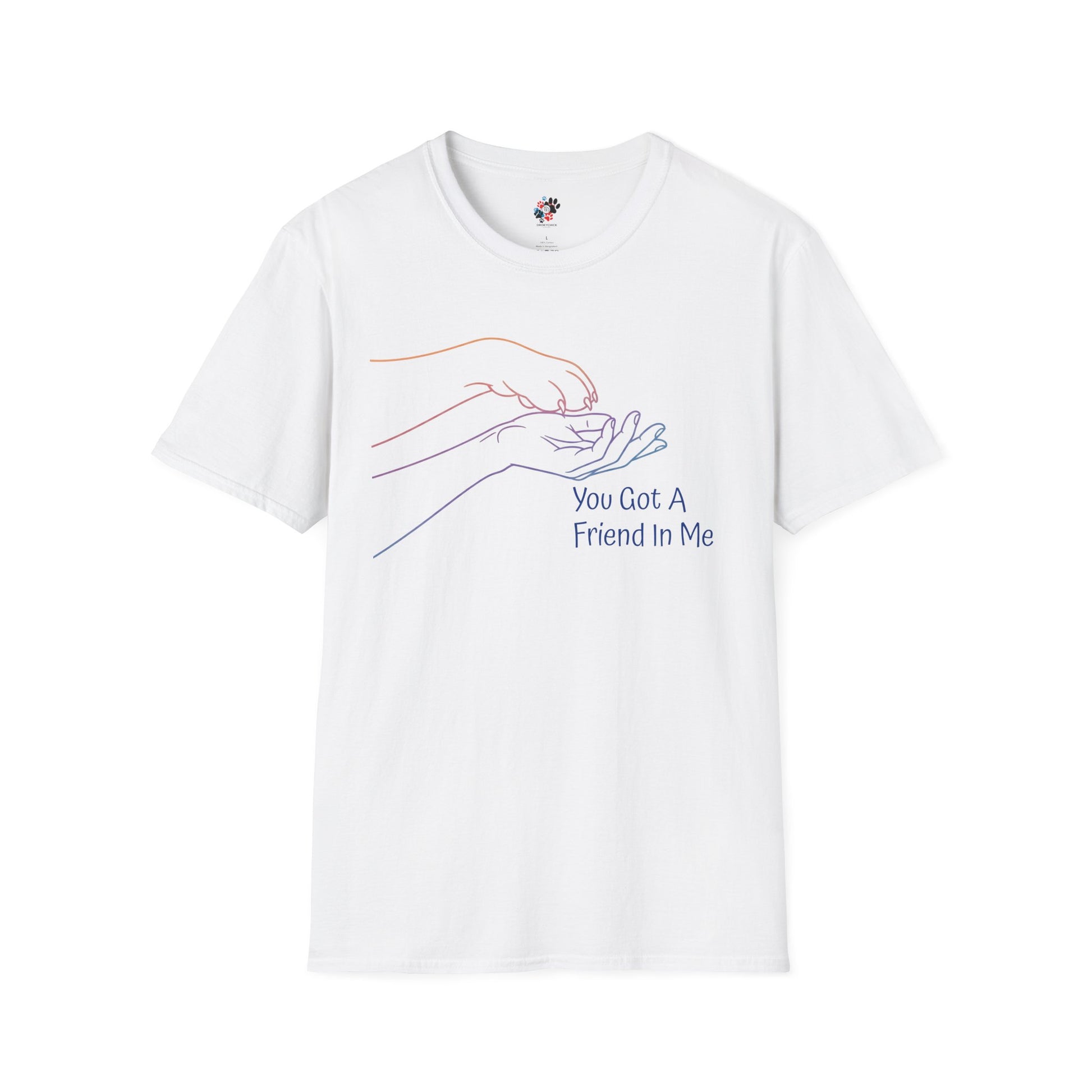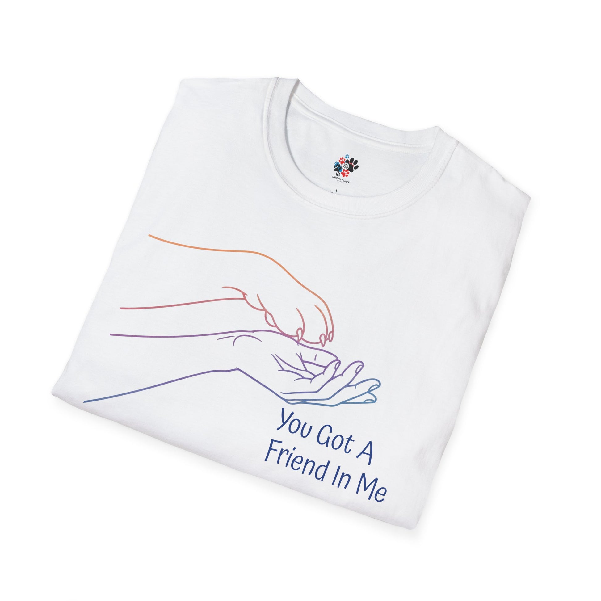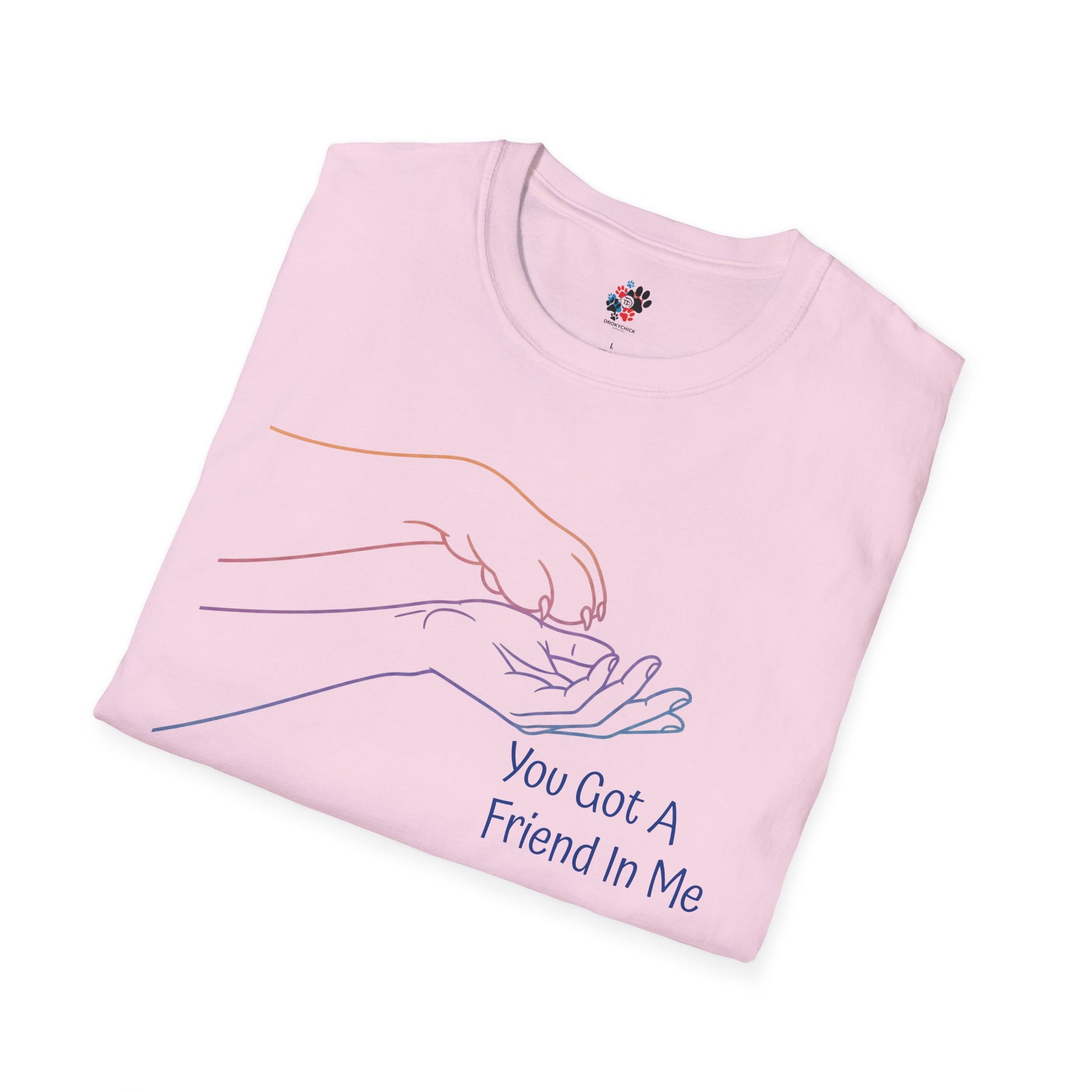 Celebrate friendship and connection with this charming unisex softstyle t-shirt. Featuring a heartwarming design that reads "You Got A Friend In Me," this tee radiates warmth and positivity, making it perfect for casual outings or cozy gatherings. Its lightweight, breathable fabric ensures all-day comfort, making it an ideal choice for friends, family, or anyone who appreciates a good laugh and heartfelt sentiment. Whether you're celebrating birthdays, friendship days, or just having a fun day out, this t-shirt is a great way to spread joy and remind loved ones of their importance in your life. Designed for adults, it invites everyone to share in the joy of camaraderie and support, making it a thoughtful gift for any occasion.