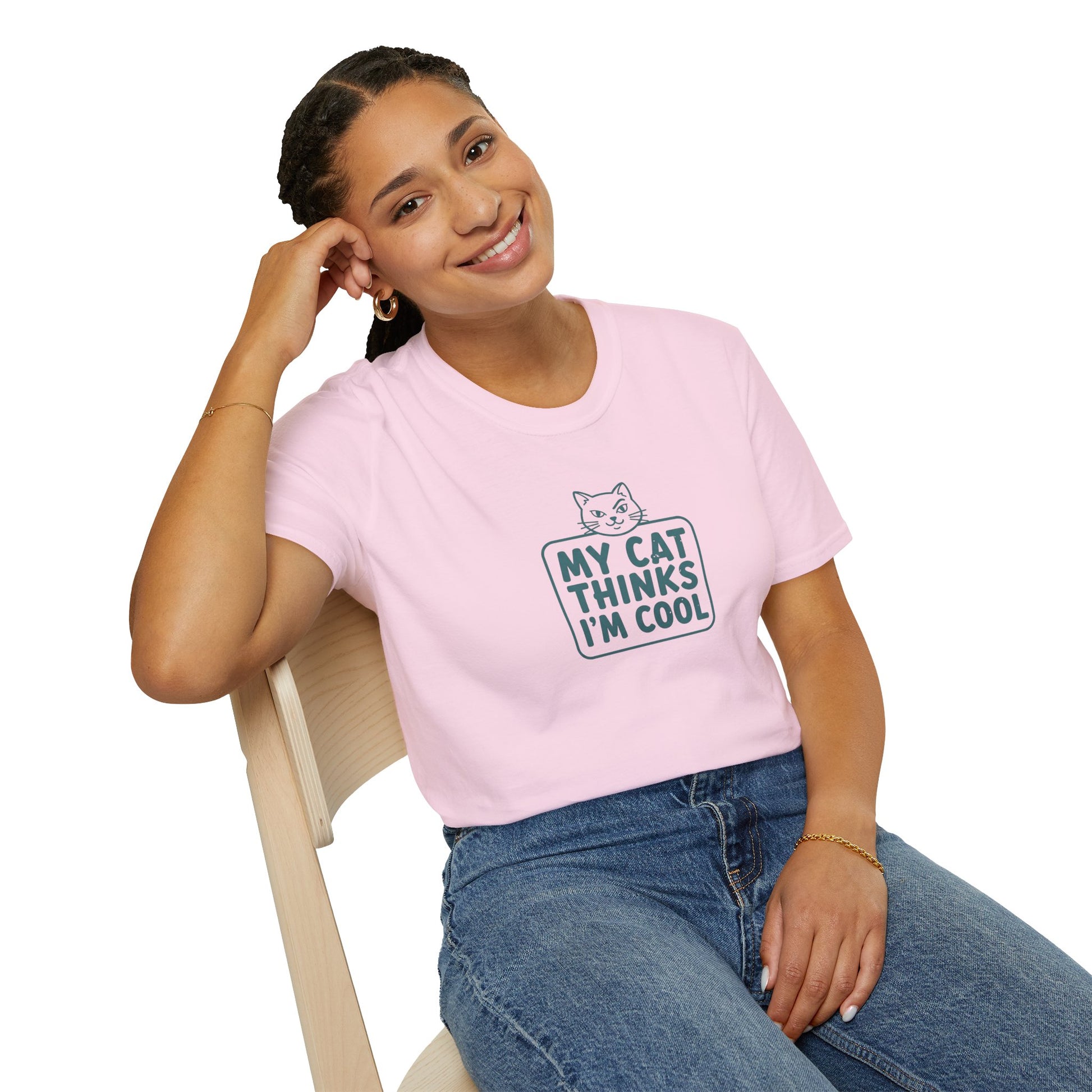 Introducing a fun and stylish Unisex Softstyle T-Shirt that resonates with cat lovers everywhere! This tee features a playful slogan, "My Cat Thinks I'm Cool," making it a perfect conversation starter. Crafted with comfort in mind, it embraces a soft, lightweight feel that you can enjoy year-round. Whether you're lounging at home, meeting friends, or heading out for a casual day, this shirt effortlessly complements any outfit. Ideal for everyone from pet enthusiasts to quirky fashion lovers, it makes an excellent gift for birthdays, holidays, or any celebration where a smile is needed.