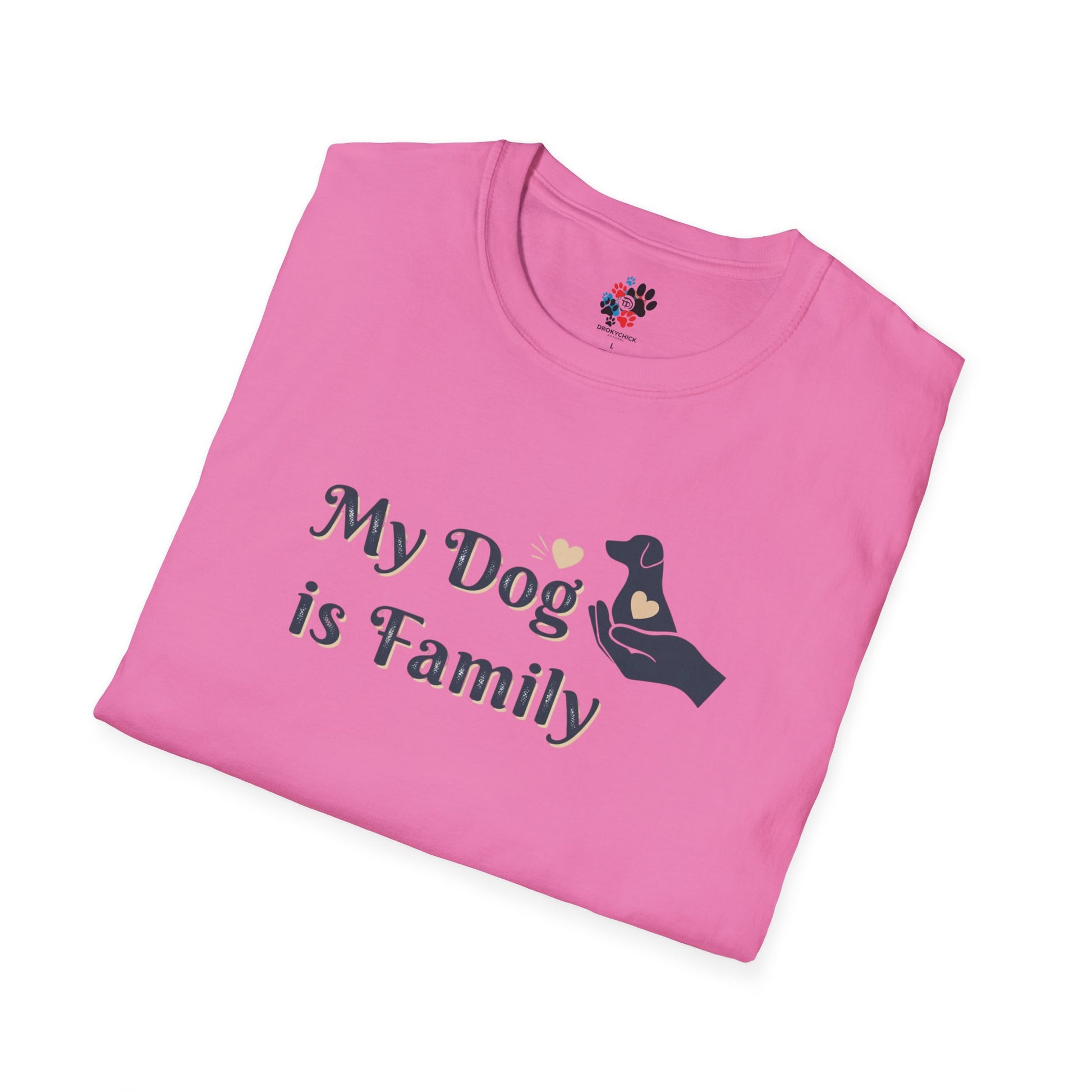 Elevate your casual wardrobe with this classic Unisex Softstyle T-Shirt, designed to offer comfort and style for everyday wear. Made from 100% ring-spun cotton, this lightweight t-shirt is a joy to wear throughout the year. It features a clean, versatile style with a ribbed neckline, making it perfect for both formal and semi-formal occasions. Ideal for dog lovers, this shirt beautifully expresses the sentiment that 'My Dog is Family,' creating a warm and inviting atmosphere wherever you go. It's perfect for casual outings, family gatherings, or a cozy day at home. Celebrate your love for pets and showcase your unique style during holidays like National Dog Day or any dog-themed events. With its durable fabric and ethical production, this shirt is not just a clothing item, but a statement of your values. Whether for yourself or as a heartfelt gift, this t-shirt is the perfect addition to any pet lover's wardrobe.