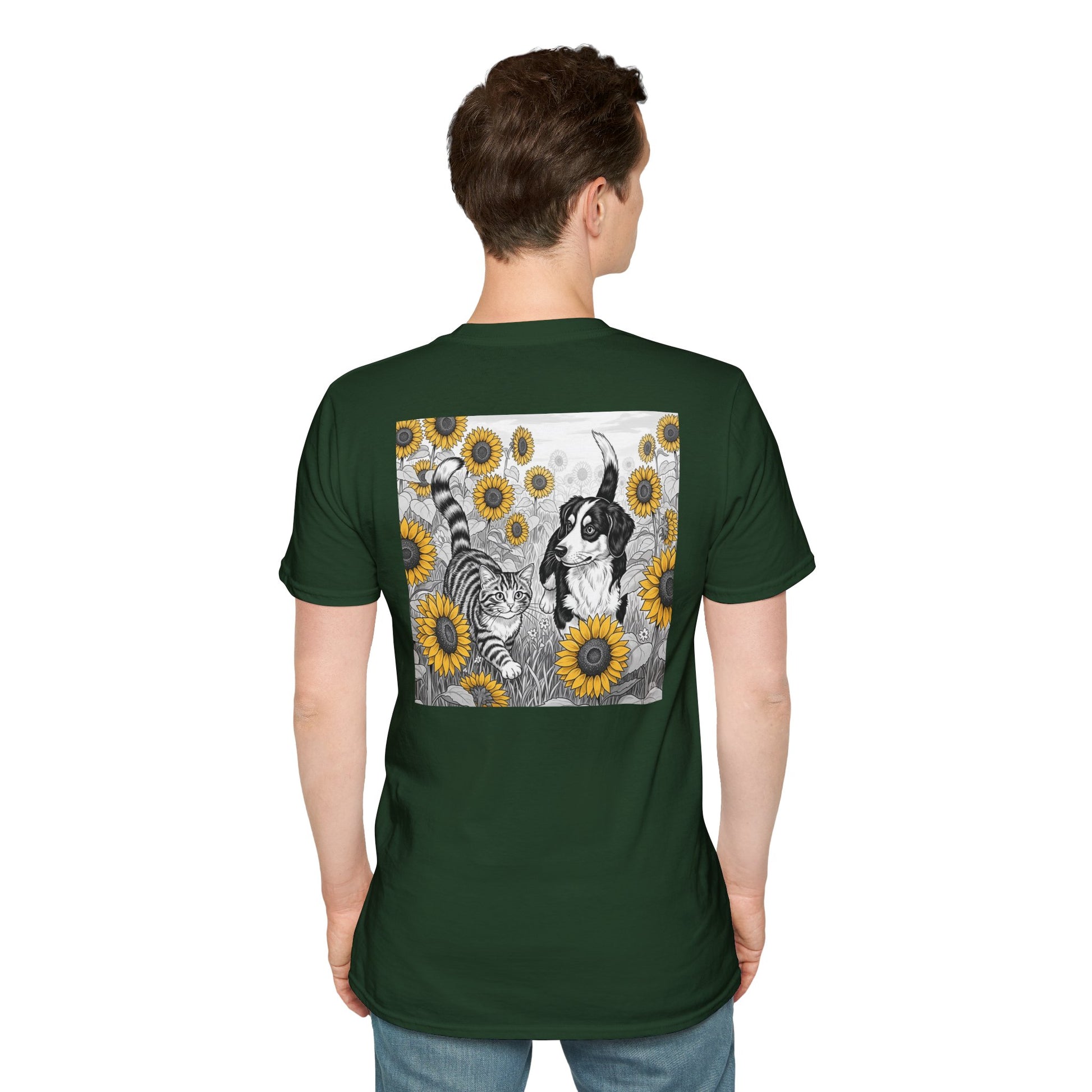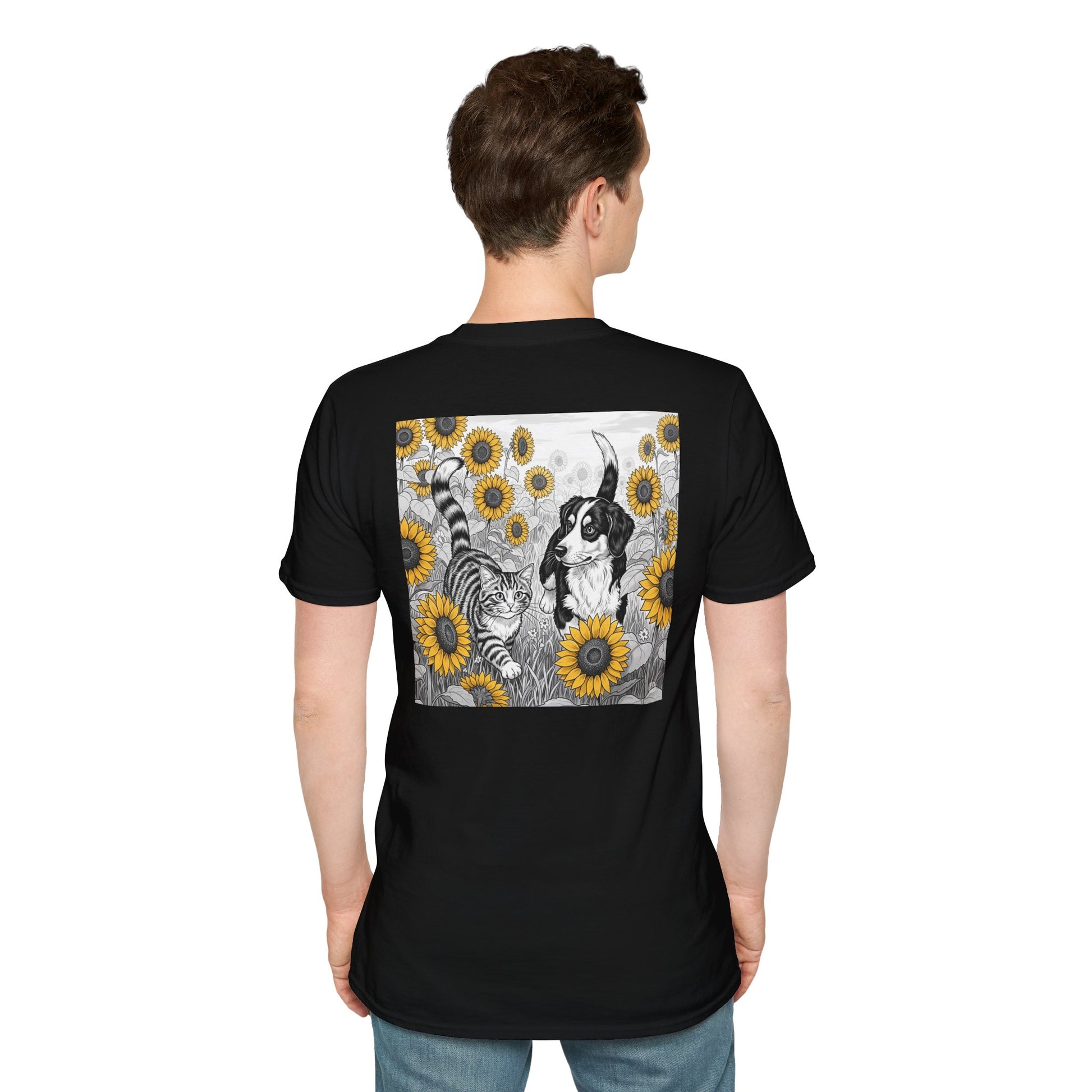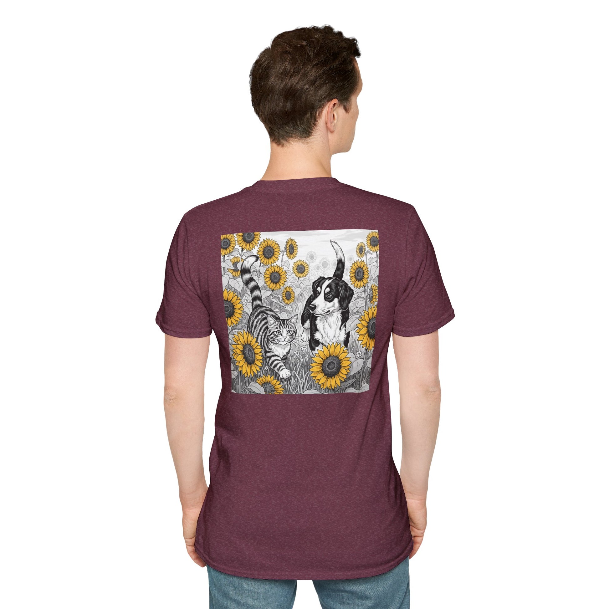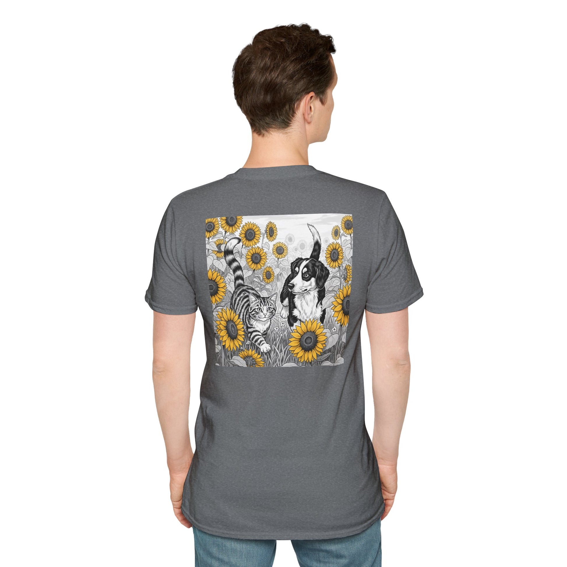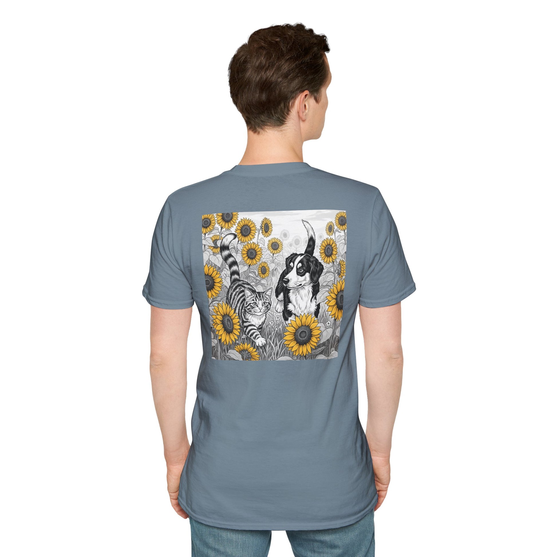 This unisex t-shirt is the perfect blend of comfort and style, making it a versatile addition to any wardrobe. Its lightweight fabric feels soft against the skin, ideal for all-day wear, whether you're lounging at home or out with friends. The modern design, featuring a unique graphic of playful pets among vibrant sunflowers, brings a cheerful and friendly vibe, making it a lovely statement piece for animal lovers. Celebrate your love for pets during any casual occasion or informal gathering. Perfect for birthdays, holidays, or simply as a delightful gift for the animal enthusiast in your life!